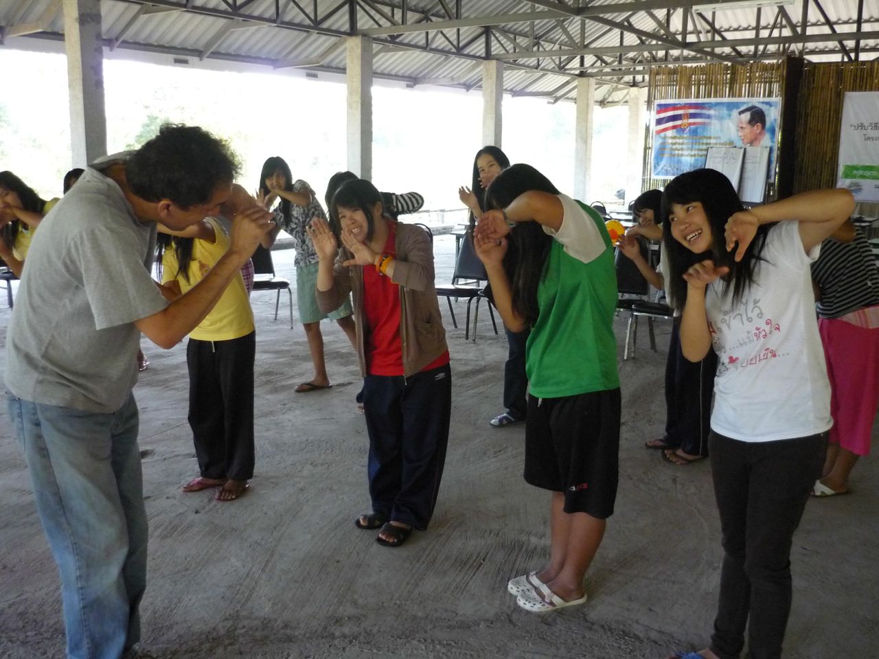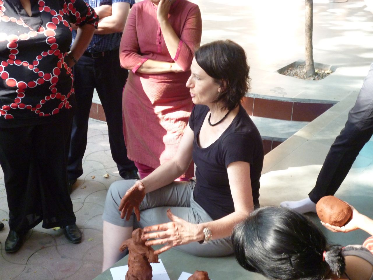drama : working on scenes and community stories to present to the group or wider community, eg in Thailand we worked on community issues such as trafficking, local community life; in India themes of school life and child labour were explored in this way.