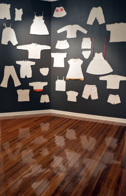 DARK NIGHTS is an exhibition at the Maroondah Art Gallery bringing together a range of works that considers gender based violence. My contribution is an installation of works contemplating the on-going impact of childhood abuse, the losses, the grief as well as the frailties that result in unsound homes and parenting. My installation is in the side gallery – please note that this part of the exhibition is only up until Saturday 15 JUNE, after that, only one work will be in the main gallery.