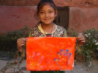 This simple art project with street children of Bhaktapur, Nepal delights them because of the natural resist between oil pastels and water based ink. This was a small project done on a day when we had lots of extra children in the program and a bit of time up our sleeve.