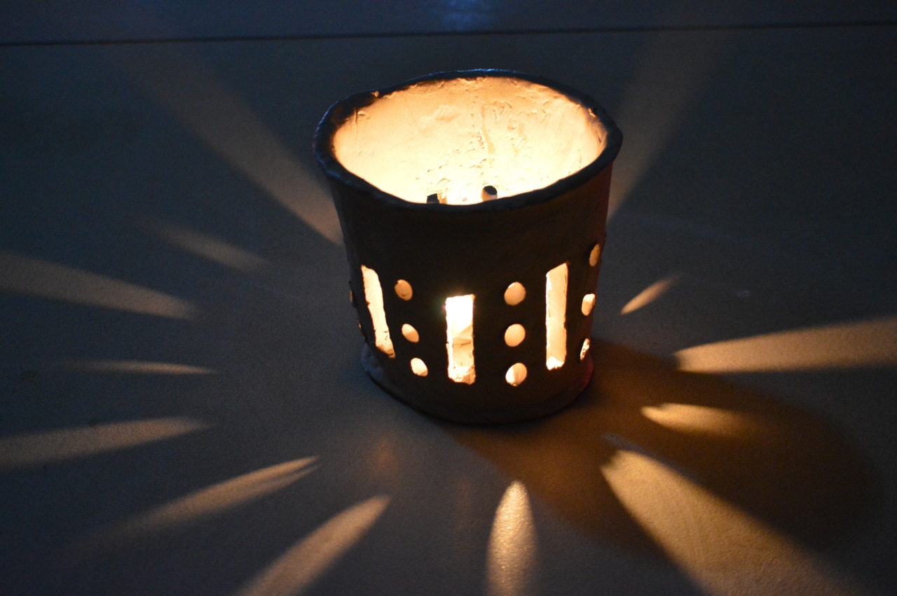 The following week we experimented with placing a range lights and candles inside and outside the vessels. It was fun to dim the lights in the art room and marvel at the light and shadows as they played on the pots. Here are the photos from that session: