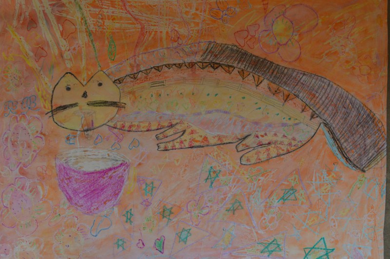 In our three day project with them we introduced them to Australian Indigenous Art and to the x-ray paintings where both the inside and outside of the animal is depicted.