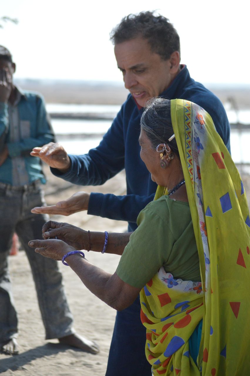 They then showed us how they cooked, including making the chapatis and dhal. It was wonderful to see people recognise their daily activities in a theatrical context and view it with plenty of laughter and comment. The grandmother of one of the families was the leader when it came to miming making chapatis. She, of course, had been cooking chapatis all her life and was determined show me how it was done correctly. She was a natural performer.