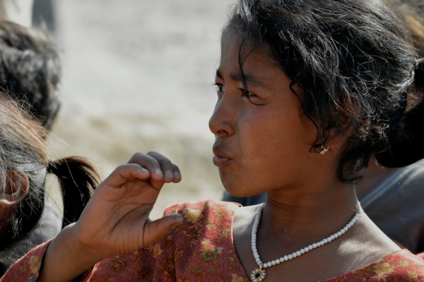 Like the saltpan workers in India, the brick makers and brick kiln workers of the Kathmandu Valley live and work in difficult and harsh circumstances. On our many walks out from Bhaktapur last year we would see small groups of people making bricks – one by one from a single timber mould. The families live in small huts next to the mounds of clay and stacks of bricks. We went to see the firing process and were incredulous to witness teams of people carrying up to 32 raw bricks into the kilns on their back, and other teams emptying the kiln in the same way. Skillful workers feed this huge and voracious kiln, pouring and poking coal down into holes, which bring the fire into carefully created gaps in the stacked bricks inside. It is hot and can be dangerous work. Smoke from the coal-fired kilns belches out across the valley, blurring the mountain views. We also learned of the pitiful living circumstances and piecework wages of these people. It is an archaic way of producing the millions of bricks that are used in nearly all buildings and many smaller roads in the valley.