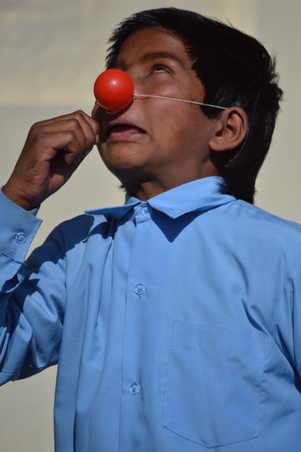 a clown in the making in the Brick Kiln community school
