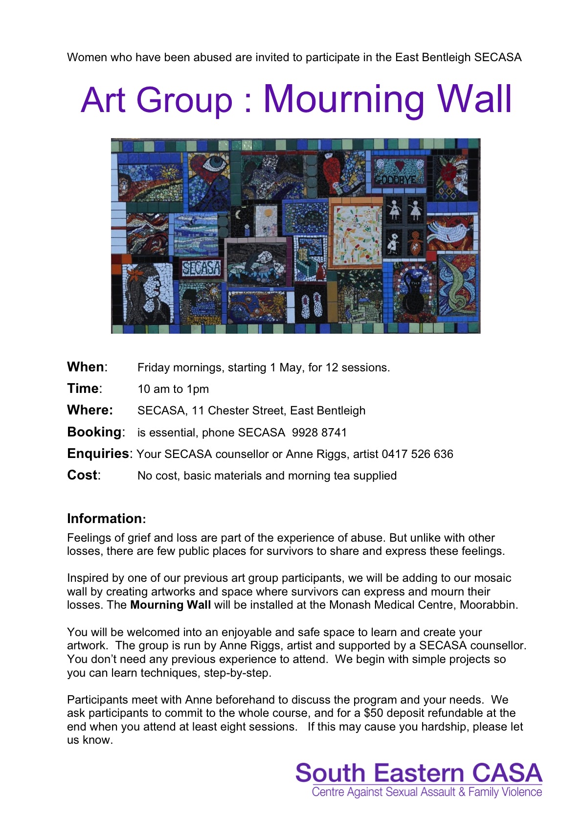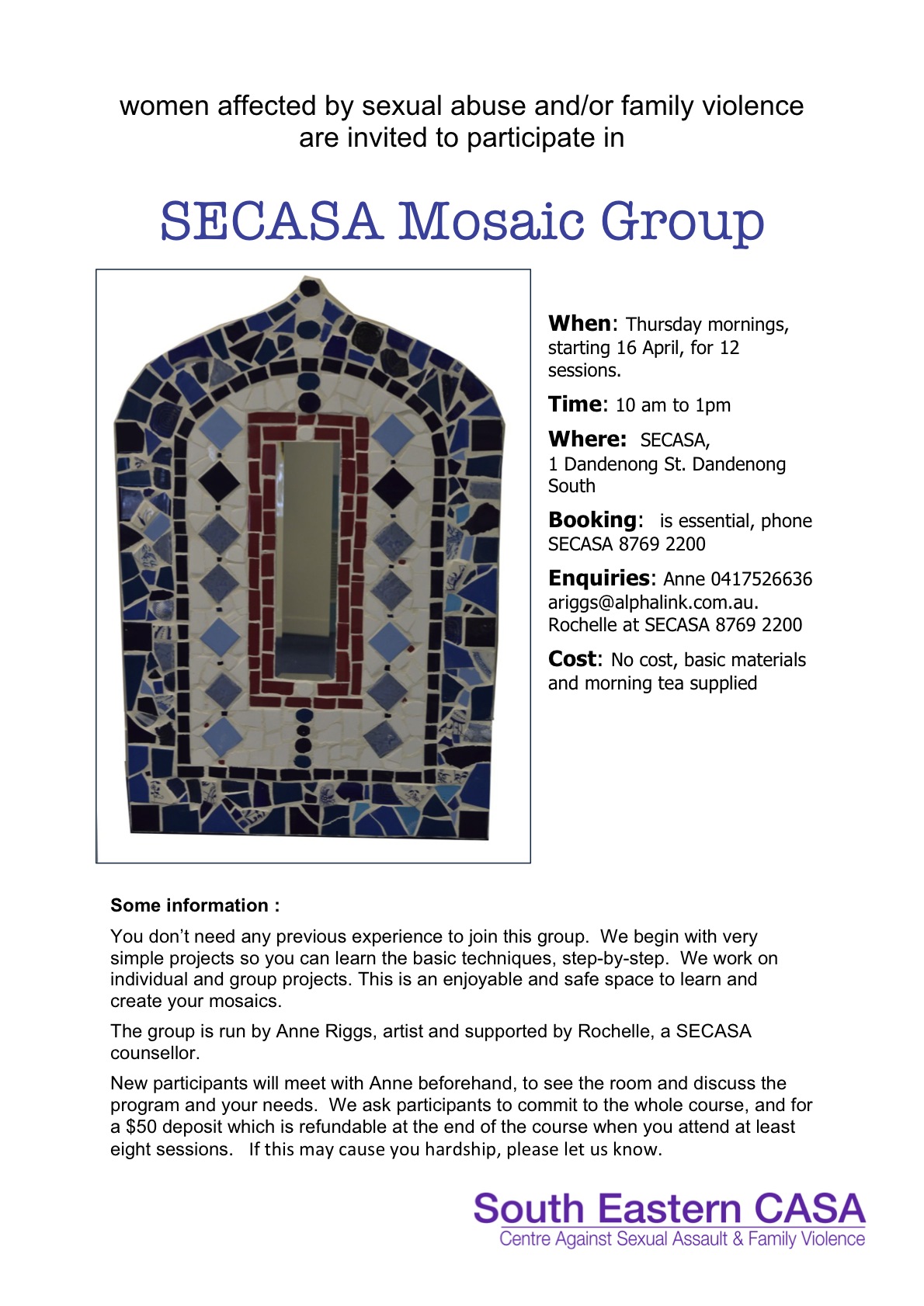 If you are interested please contact either SECASA or me, as booking is essential for these groups.