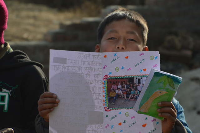 They gathered a collection of warm clothes for them. They spent money they had earned to purchase powered milk in response to my story about the crying baby in the brick kilns, and they wrote letters – in Nepali – to these children as a message of friendship and support. The school sent art materials.