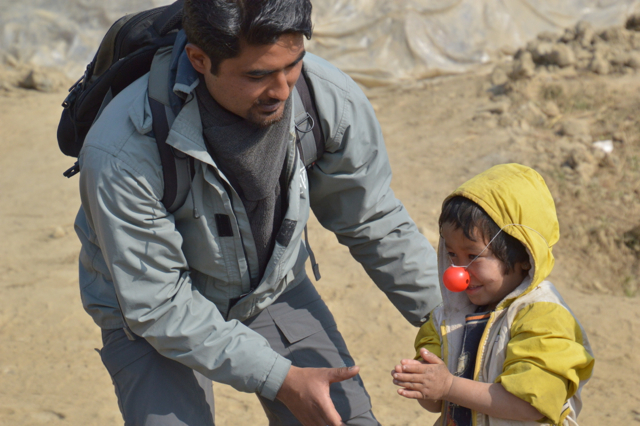Subarna always helped others. He is helping a child mime hand-washing … part of our arts and health program.